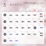 🌷3月の担当医カレンダーのお知らせ🌷 2026.01.29 お待たせいたしました🌷 3月の担当医カレンダーのお知らせです☺️ イレギュラーな日が多少ございますので、ご予約時はお気をつけいただきますよう、よろしくお願いいたします🙇♀️
